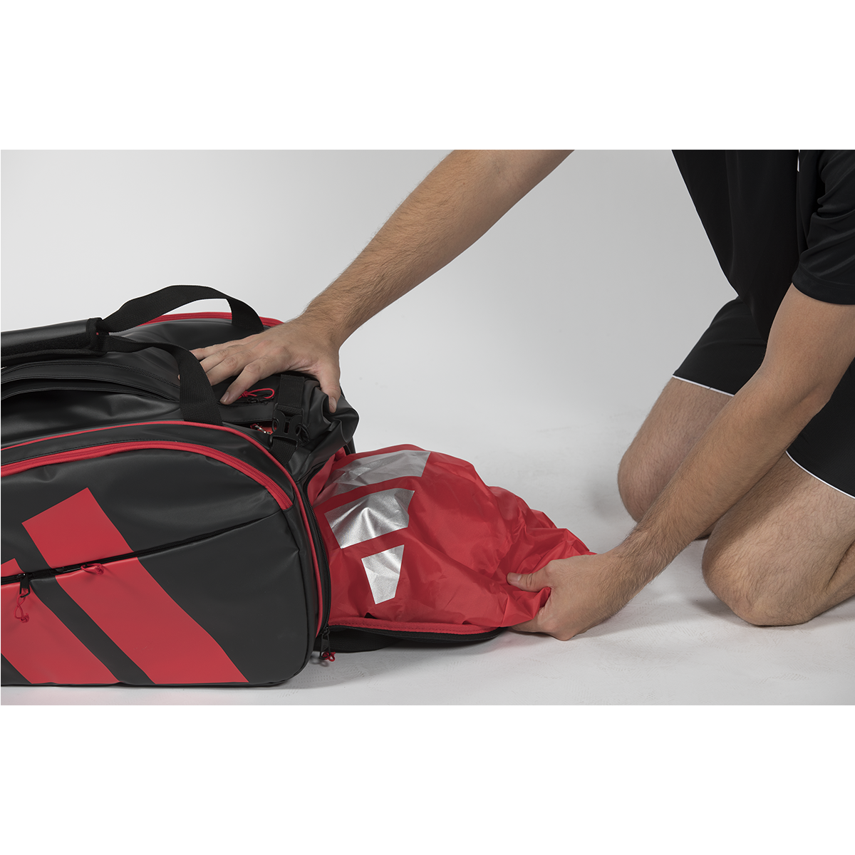 The Adidas Multigame padel racquet bag combines practical storage with iconic adidas design. The thermally insulated main compartment holds 2 rackets and protects strings from temperature extremes. Dedicated pockets keep balls, grips and personal items organized. The padded shoulder strap distributes weight evenly for comfortable court-to-court transport.